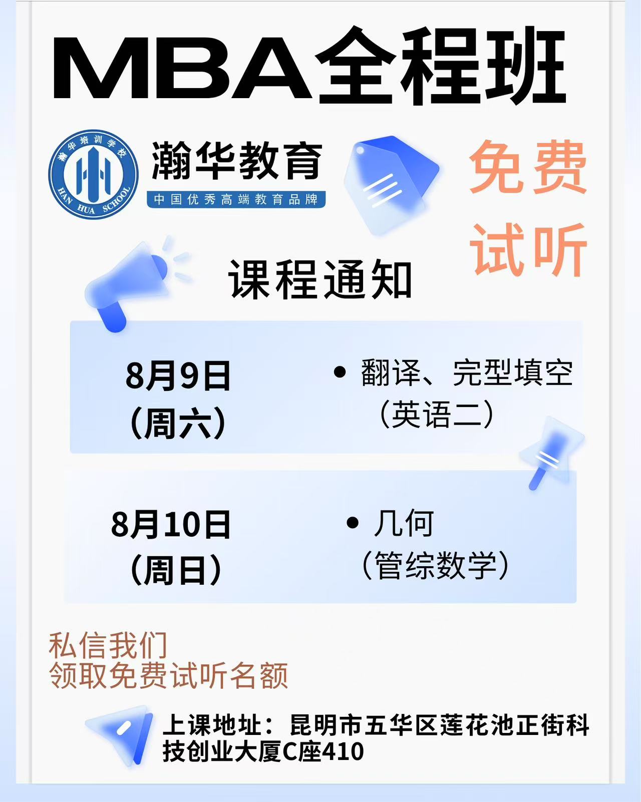 云南地区唯一一家专注于MBA、MPA(cc)、MEM、MTA考前辅导机构。十八年辅导经验,我们只做一件事,帮你考研成功!